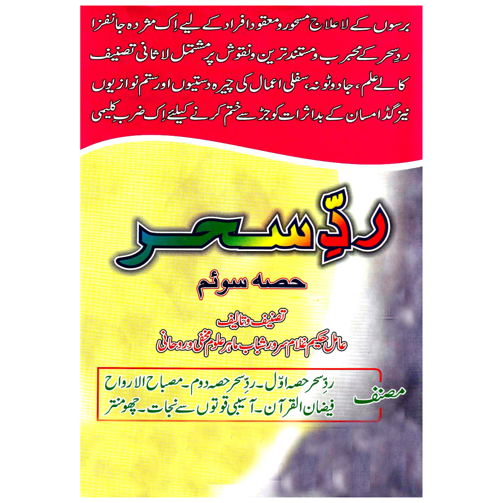 برسوں کے لاعلاج مسحورومعقود افراد کے لیے اِک مژدہ جانفزا۔ ردِ سحر کے مجرب ومستند ترین ونقوش پرمشتمل لاثانی تصنیف ۔ کالے علم، جادوٹونہ، سفلی اعمال کی چیرہ دستیوں اور ستم نوازیوں نیز گڈا مسان کے بداثرات کوجڑ سے ختم کرنے کیلئے اِک ضربِ کلیمی۔